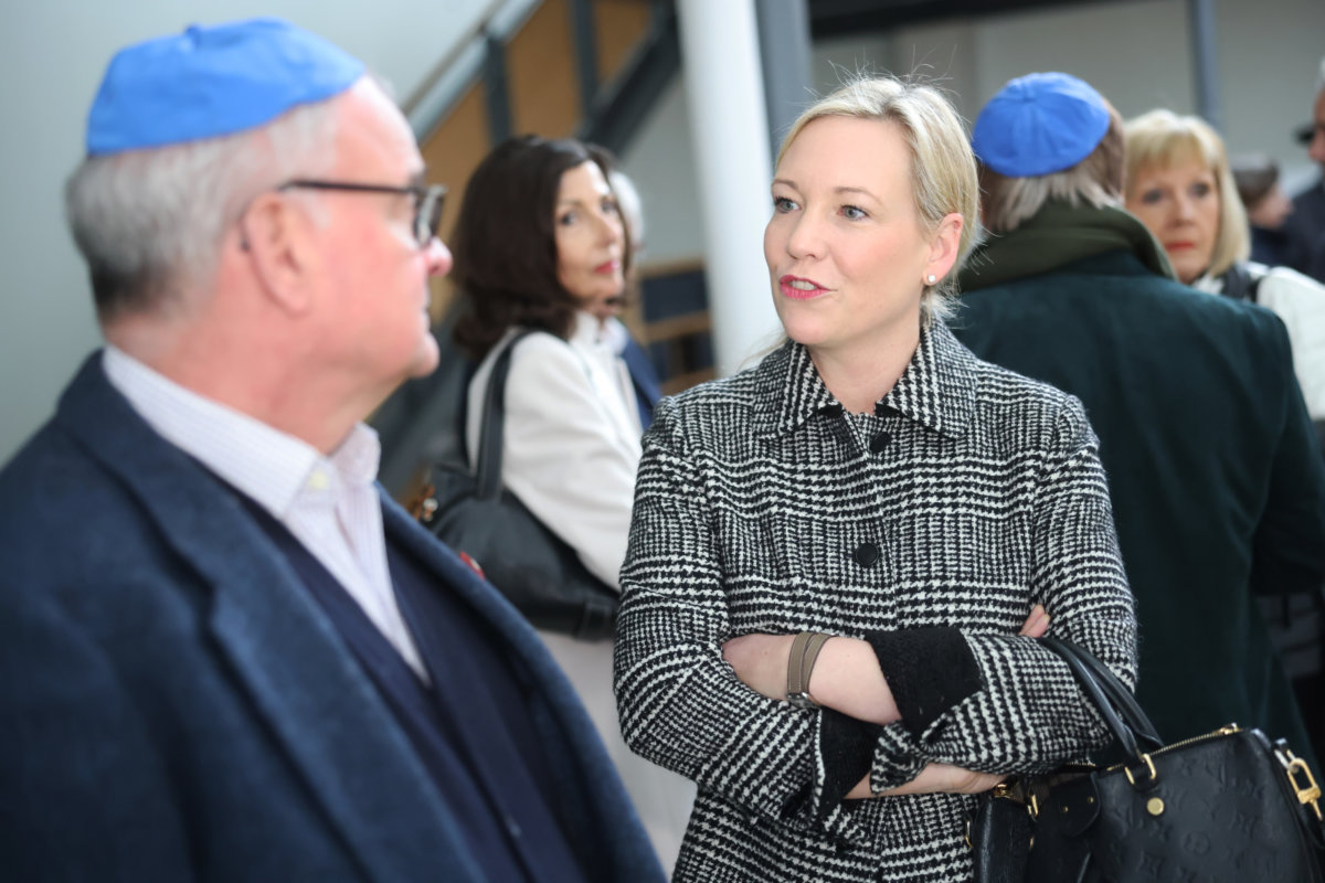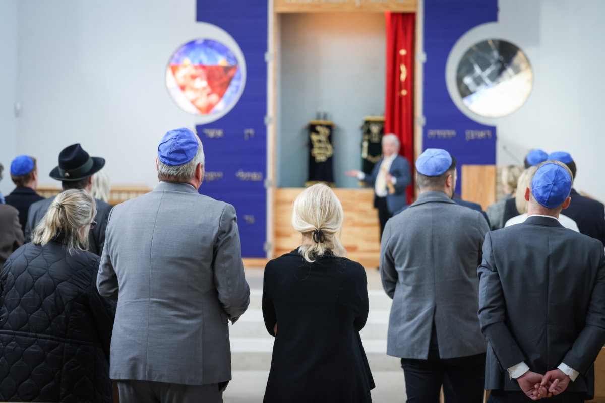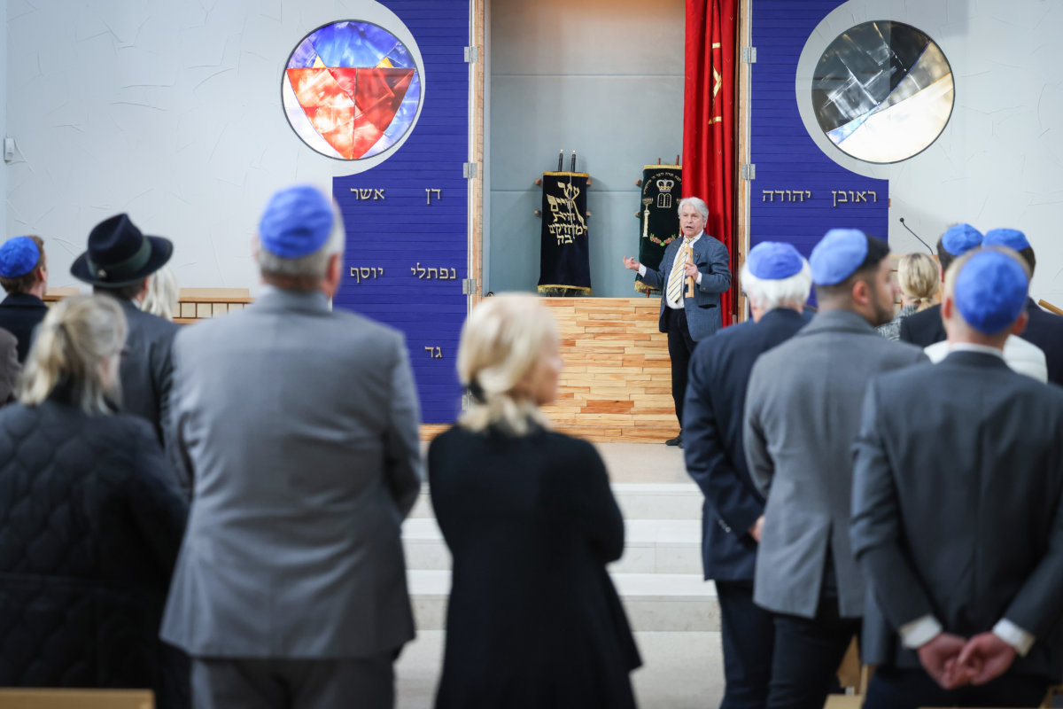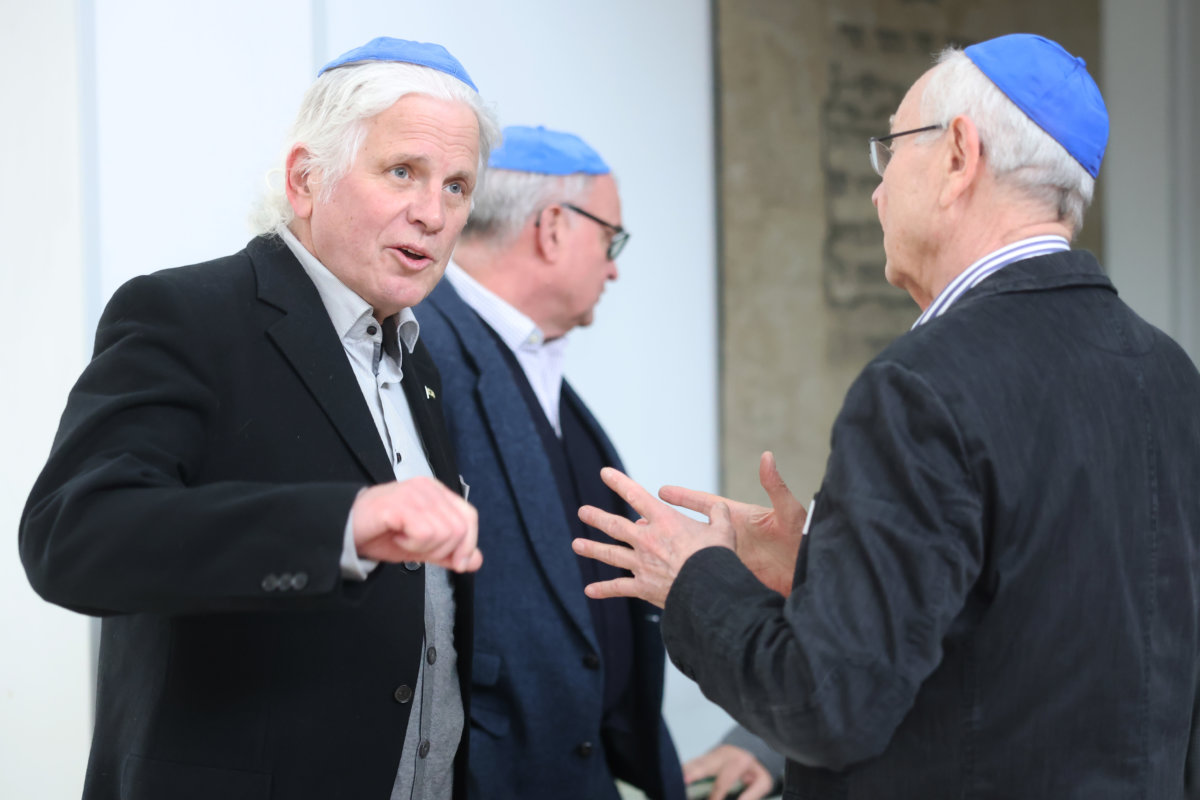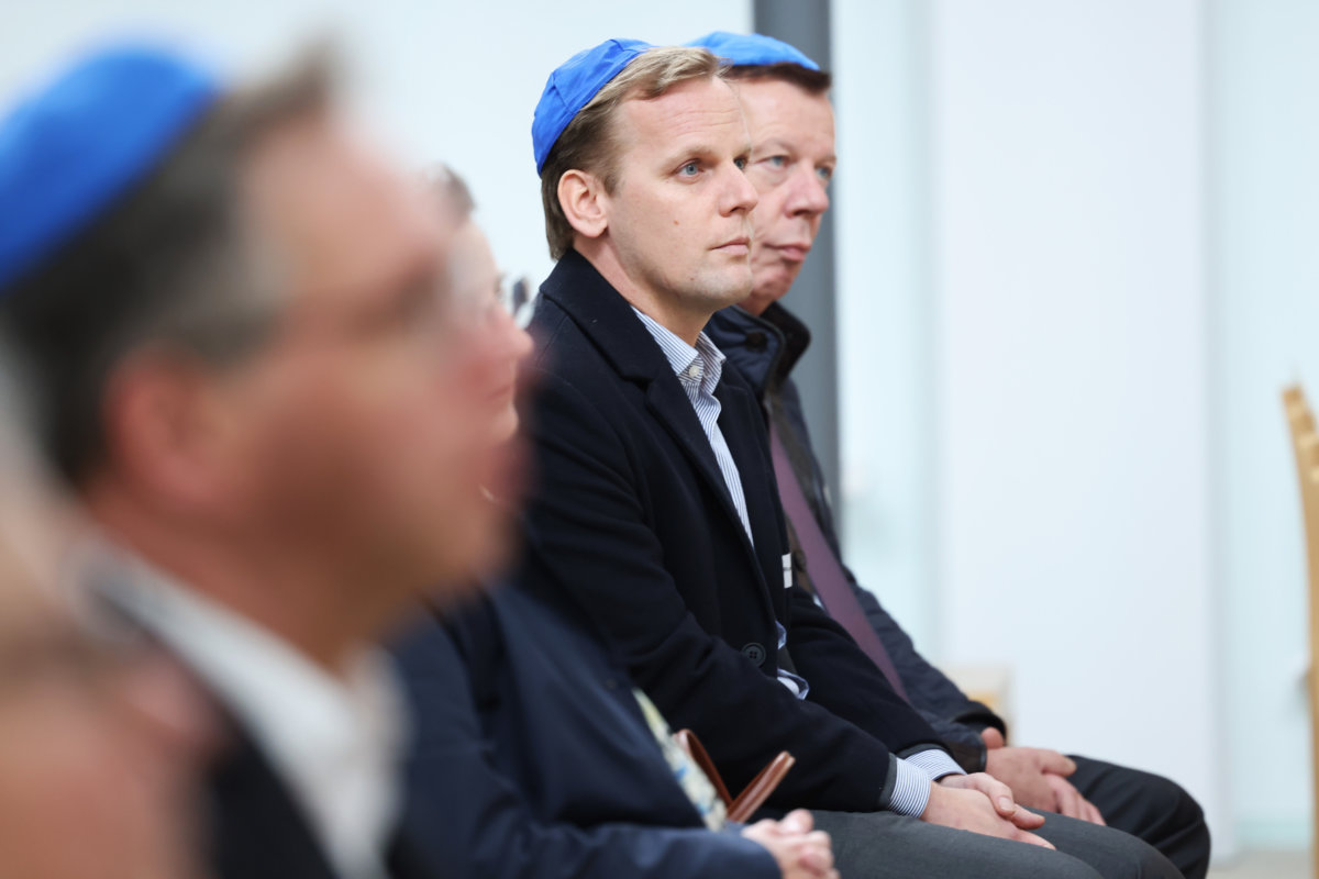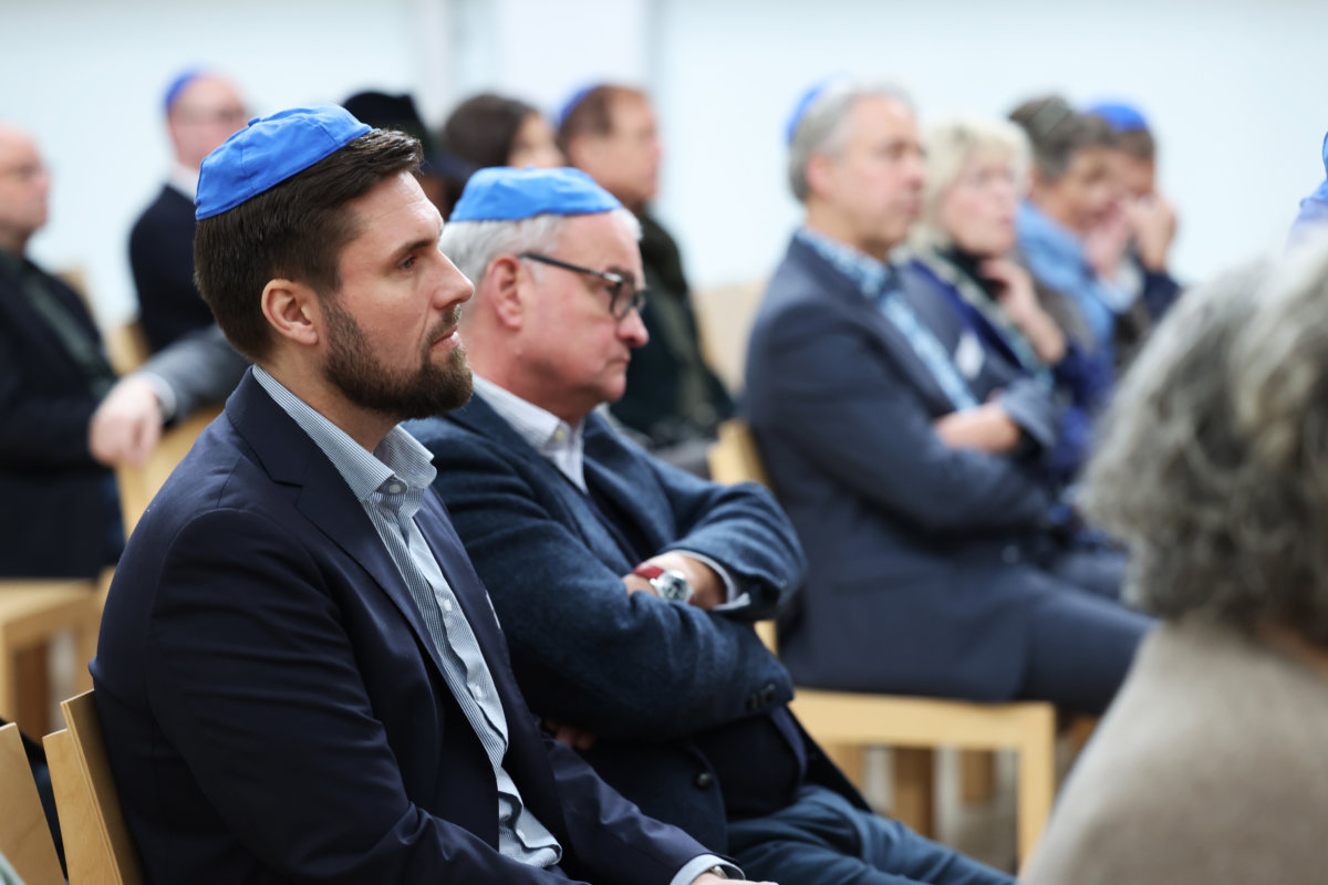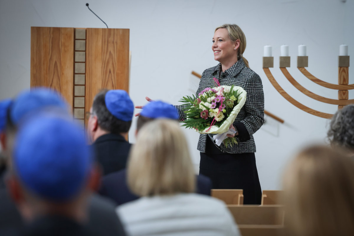 Vor dem abschließenden informellen Austausch bei koscherem Wein stellte Kantor Paul Yuval Adam die baulichen Veränderungen an der ehemaligen evangelischen Paul-Gerhardt-Kirche vor. Sie wurde 2008 zur Synagoge umgebaut. „Wir fühlen uns in der Nachbarschaft und Stadtgesellschaft gut aufgehoben“, erklärte Irith Michelsohn abschließend. Dennoch stehe die Synagoge zum Schutz vor antisemitischer Gewalt ständig unter Polizeischutz. Ein Besuch für Nicht-Gemeindemitglieder ist nur nach Anmeldung und Taschenkontrolle möglich. „Mein Wunsch für die Zukunft wäre mehr Normalität“, so die Gemeindevorsitzende. „Ich möchte gern einmal zu spät zum Gottesdienst kommen können, ohne vorher an der Tür klingeln zu müssen“.