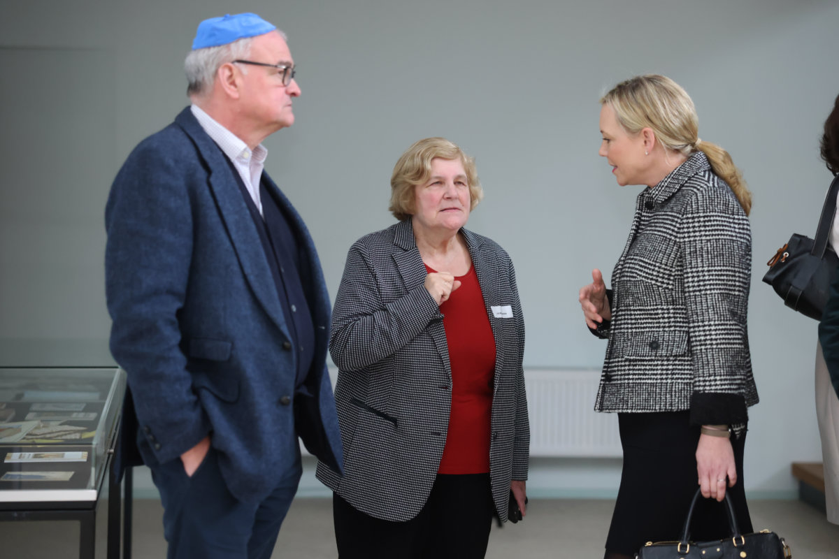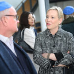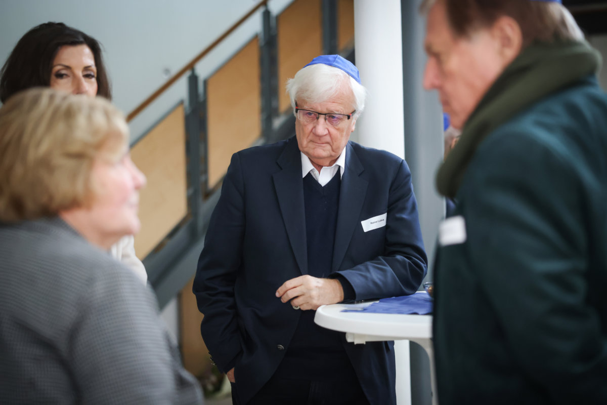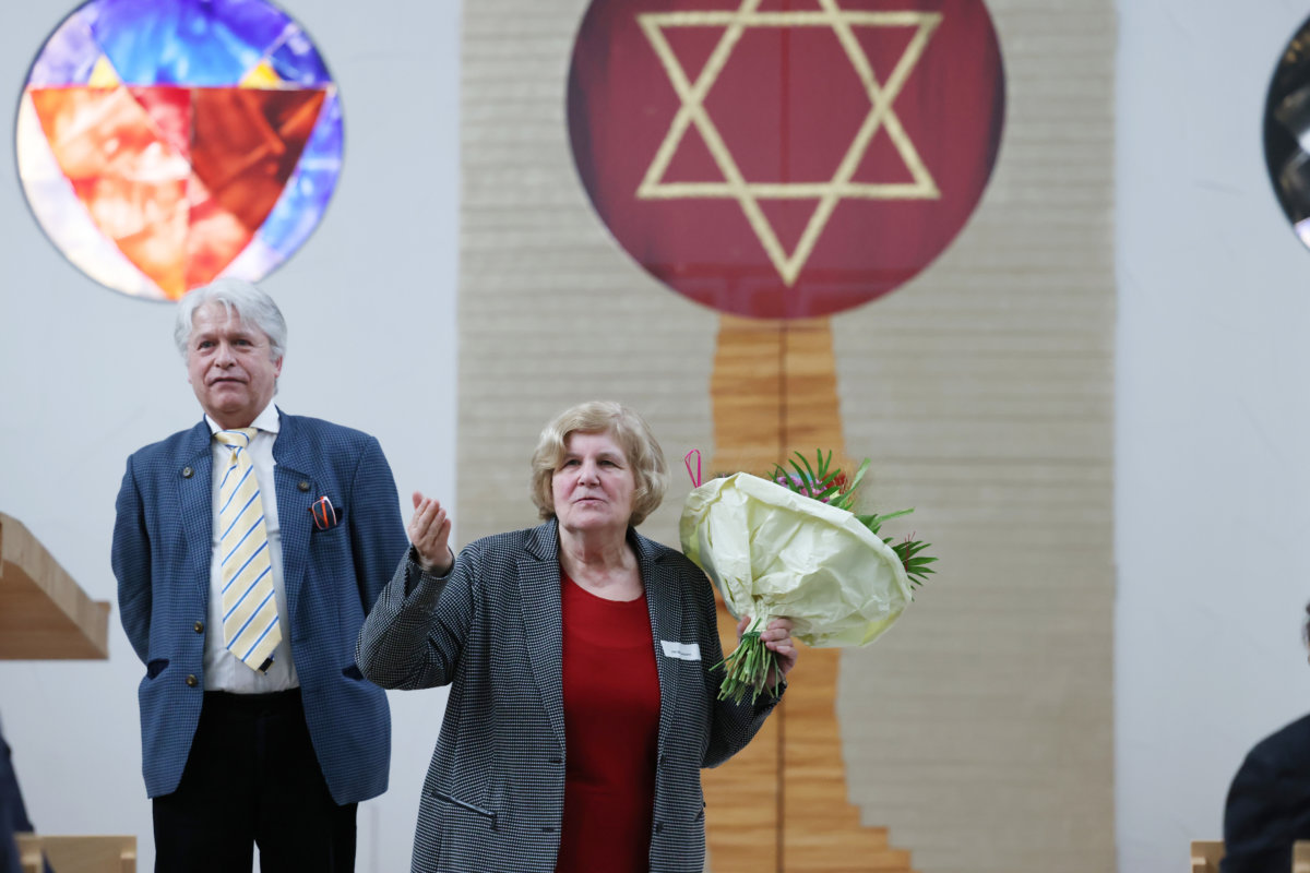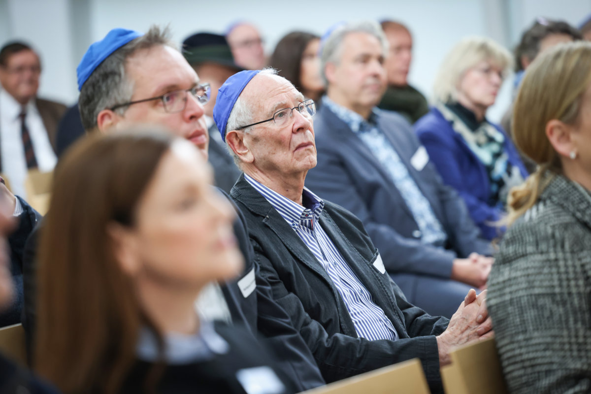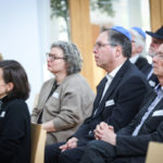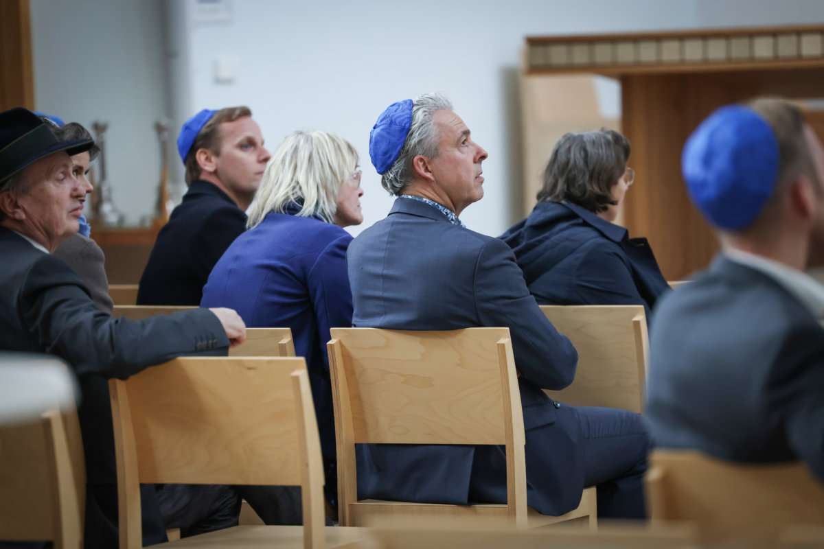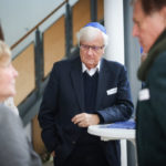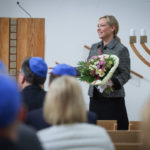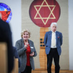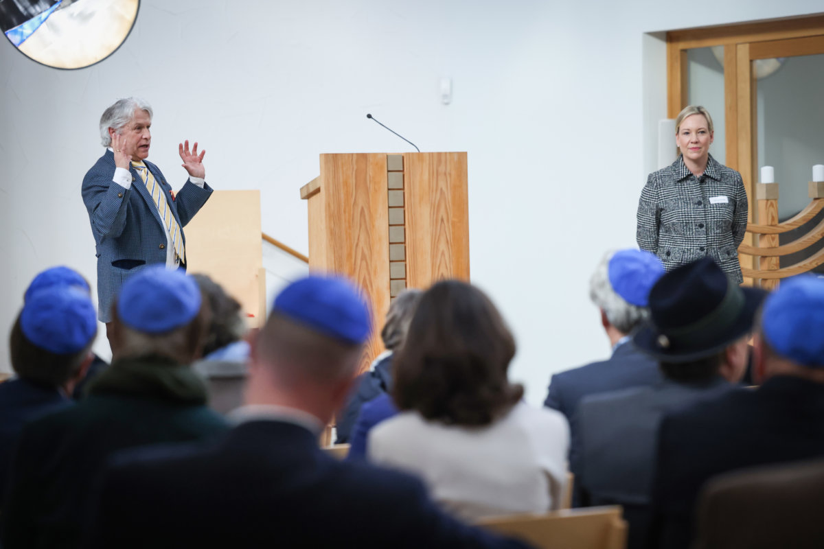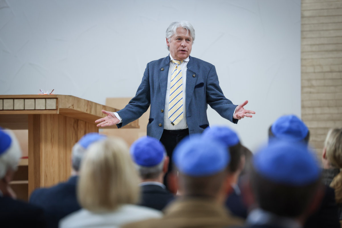 Vor dem abschließenden informellen Austausch bei koscherem Wein stellte Kantor Paul Yuval Adam die baulichen Veränderungen an der ehemaligen evangelischen Paul-Gerhardt-Kirche vor. Sie wurde 2008 zur Synagoge umgebaut. „Wir fühlen uns in der Nachbarschaft und Stadtgesellschaft gut aufgehoben“, erklärte Irith Michelsohn abschließend. Dennoch stehe die Synagoge zum Schutz vor antisemitischer Gewalt ständig unter Polizeischutz. Ein Besuch für Nicht-Gemeindemitglieder ist nur nach Anmeldung und Taschenkontrolle möglich. „Mein Wunsch für die Zukunft wäre mehr Normalität“, so die Gemeindevorsitzende. „Ich möchte gern einmal zu spät zum Gottesdienst kommen können, ohne vorher an der Tür klingeln zu müssen“.