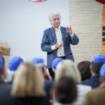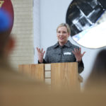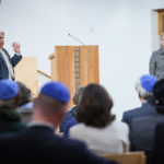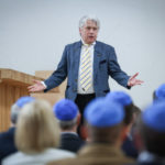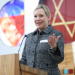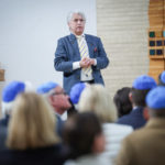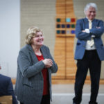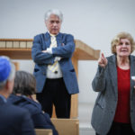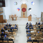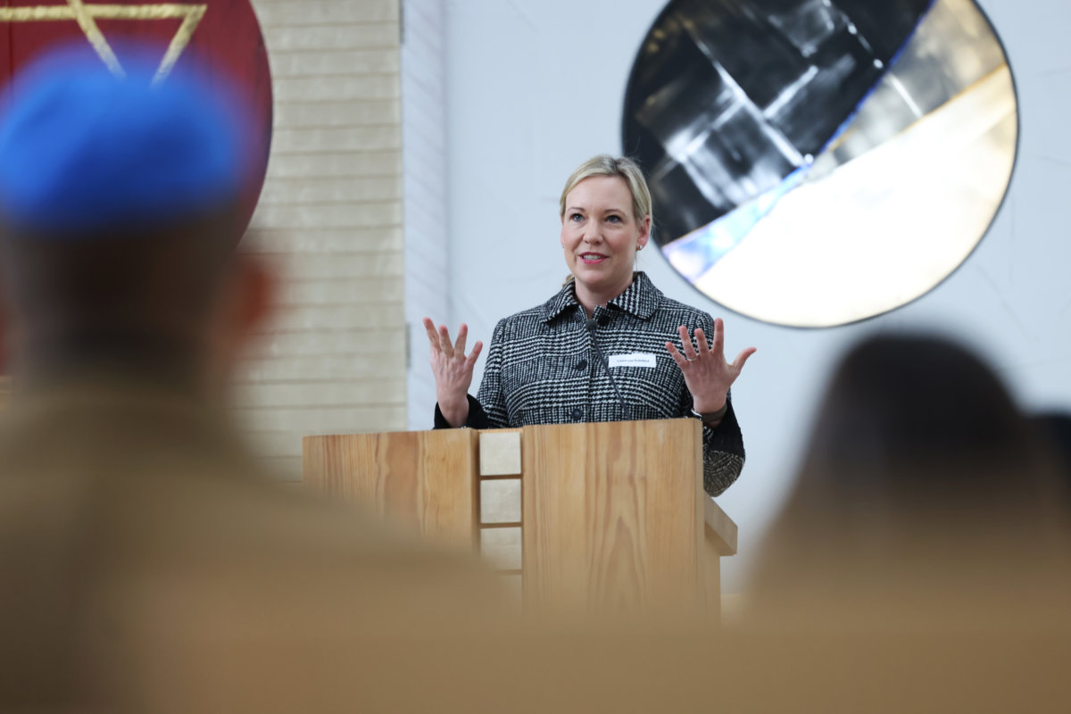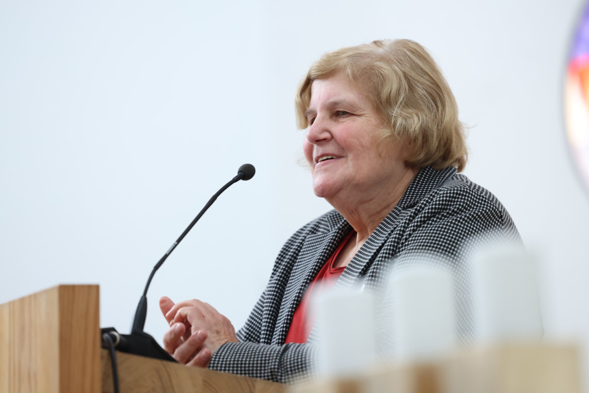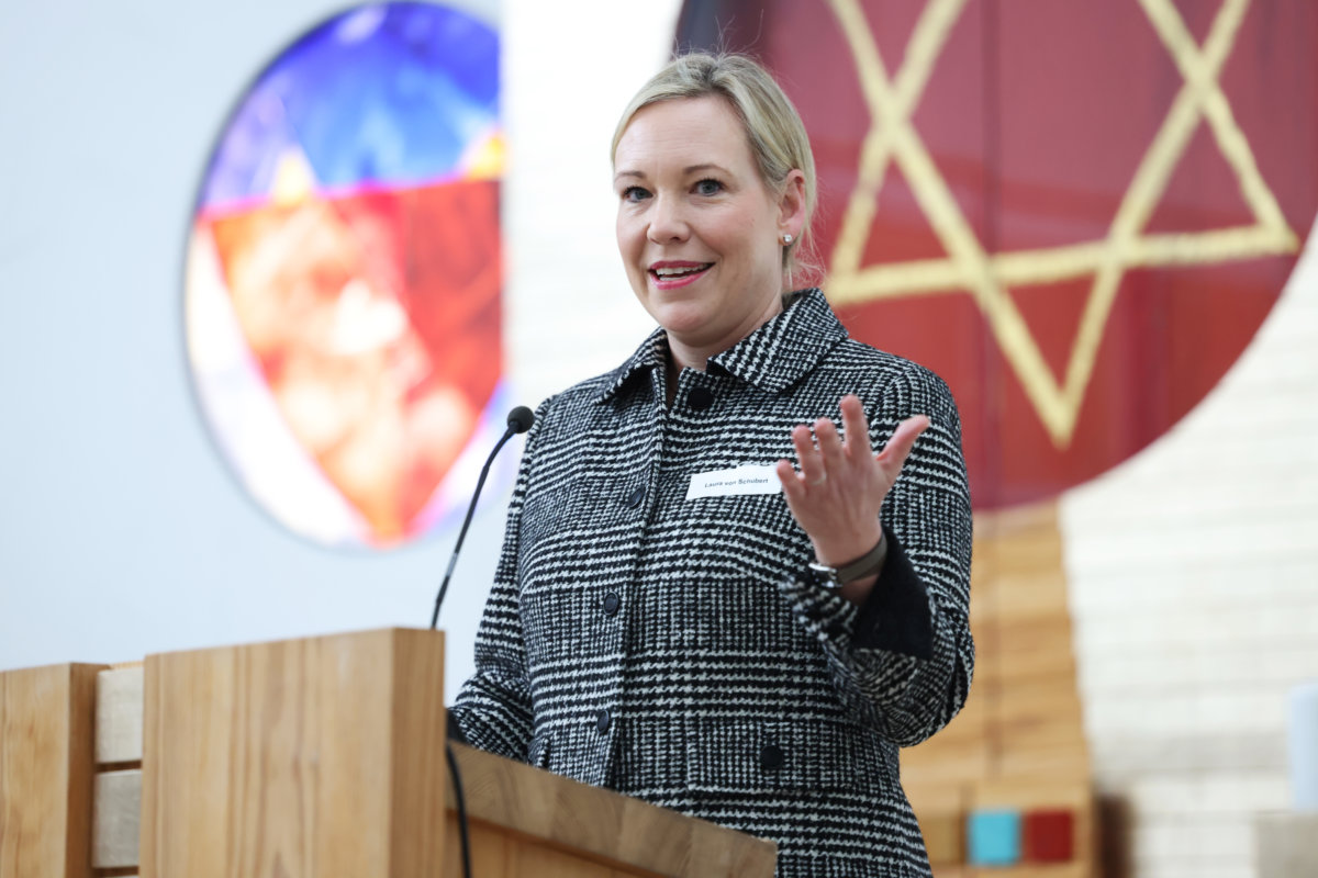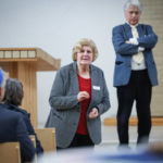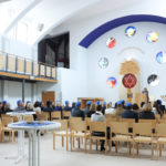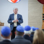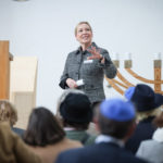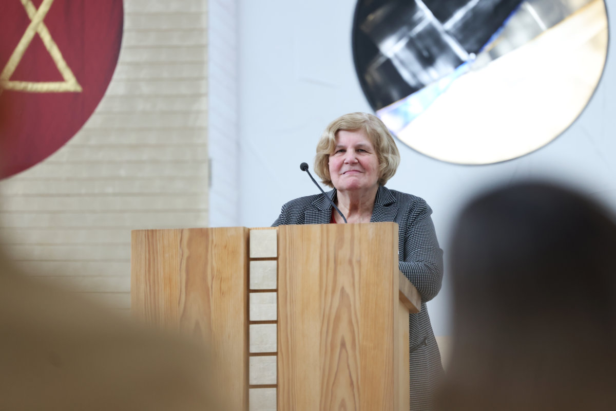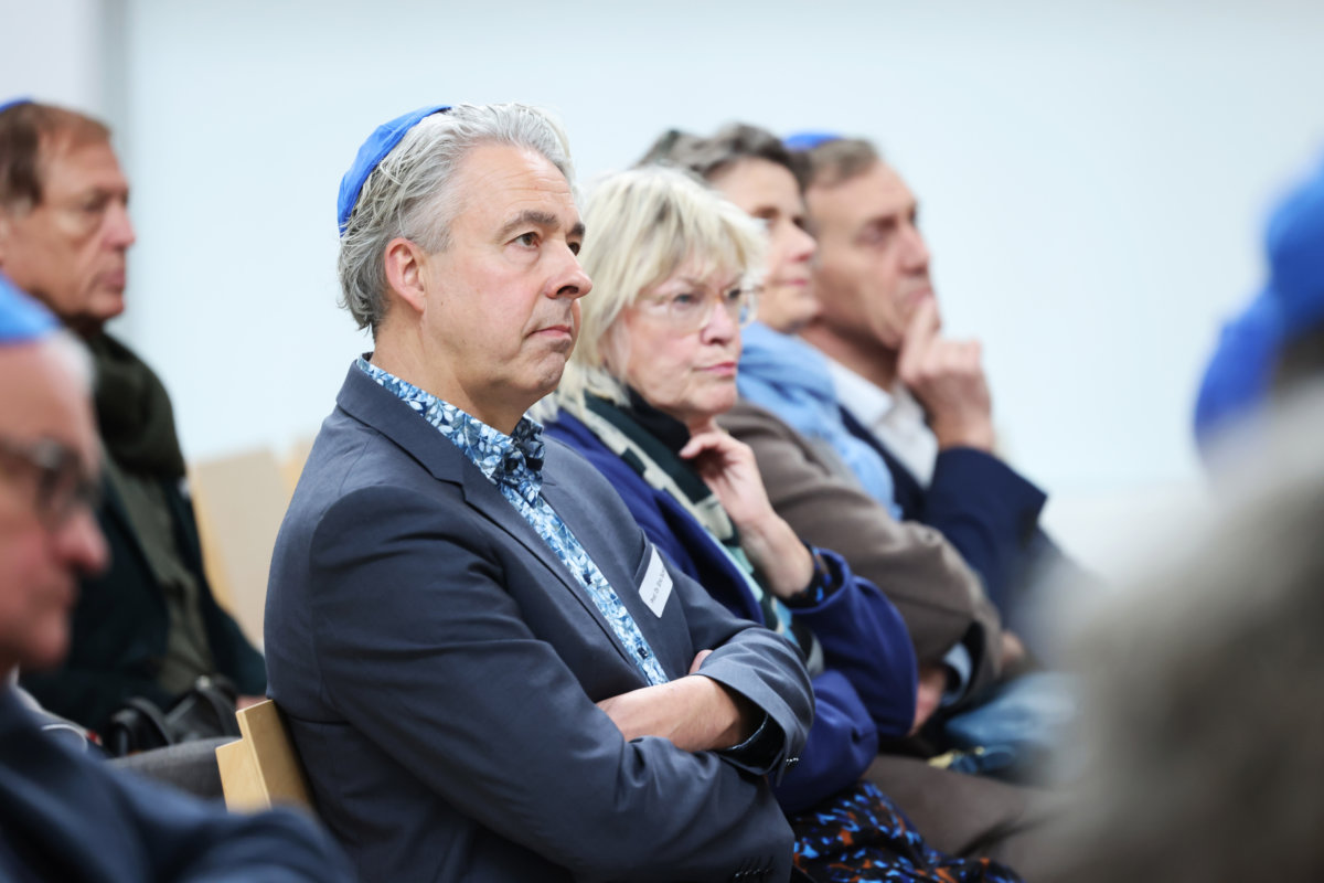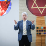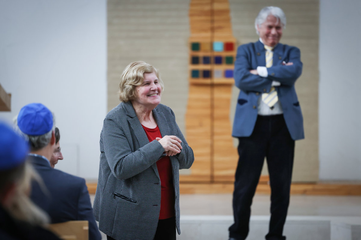 Vor dem abschließenden informellen Austausch bei koscherem Wein stellte Kantor Paul Yuval Adam die baulichen Veränderungen an der ehemaligen evangelischen Paul-Gerhardt-Kirche vor. Sie wurde 2008 zur Synagoge umgebaut. „Wir fühlen uns in der Nachbarschaft und Stadtgesellschaft gut aufgehoben“, erklärte Irith Michelsohn abschließend. Dennoch stehe die Synagoge zum Schutz vor antisemitischer Gewalt ständig unter Polizeischutz. Ein Besuch für Nicht-Gemeindemitglieder ist nur nach Anmeldung und Taschenkontrolle möglich. „Mein Wunsch für die Zukunft wäre mehr Normalität“, so die Gemeindevorsitzende. „Ich möchte gern einmal zu spät zum Gottesdienst kommen können, ohne vorher an der Tür klingeln zu müssen“.
