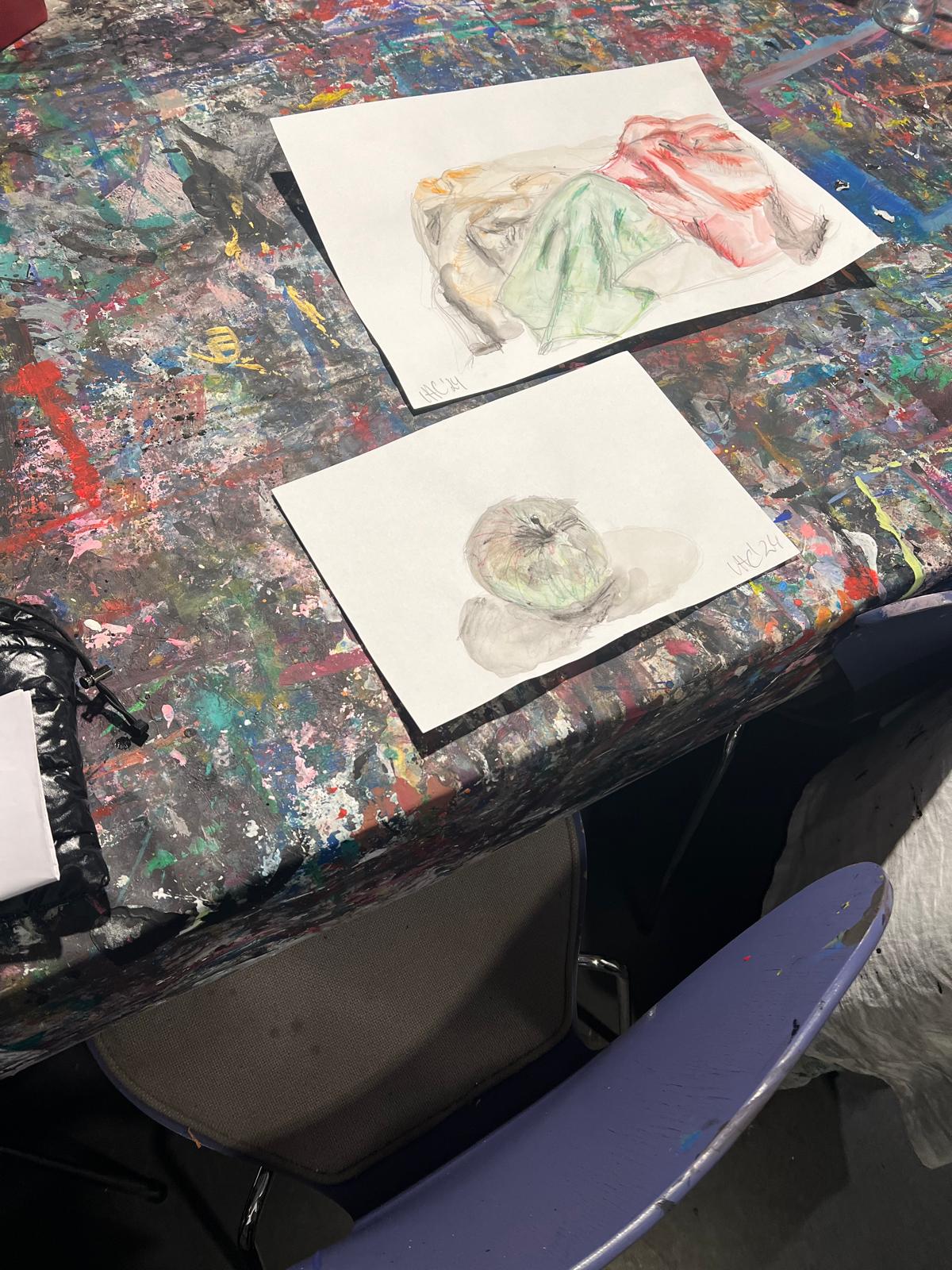 Inspiriert von den vielen Eindrücken brachten die NetzwerkF-Teilnehmerinnen im anschließenden Kreativworkshop im Kunststudio ihre eigenen kreativen Visionen auf die Leinwand. In Anlehnung an den Künstler wurden Alltagsdinge wie zum Beispiel Obst, Tücher, Äpfel, Einmachgläser oder Bonbons mit Bleistift, Acryl oder Aquarellkreide gemalt. Die Kunstwerke duften im Anschluss mit nach Hause genommen werden.