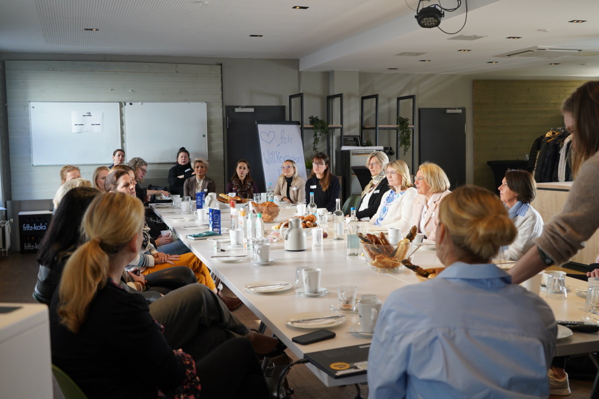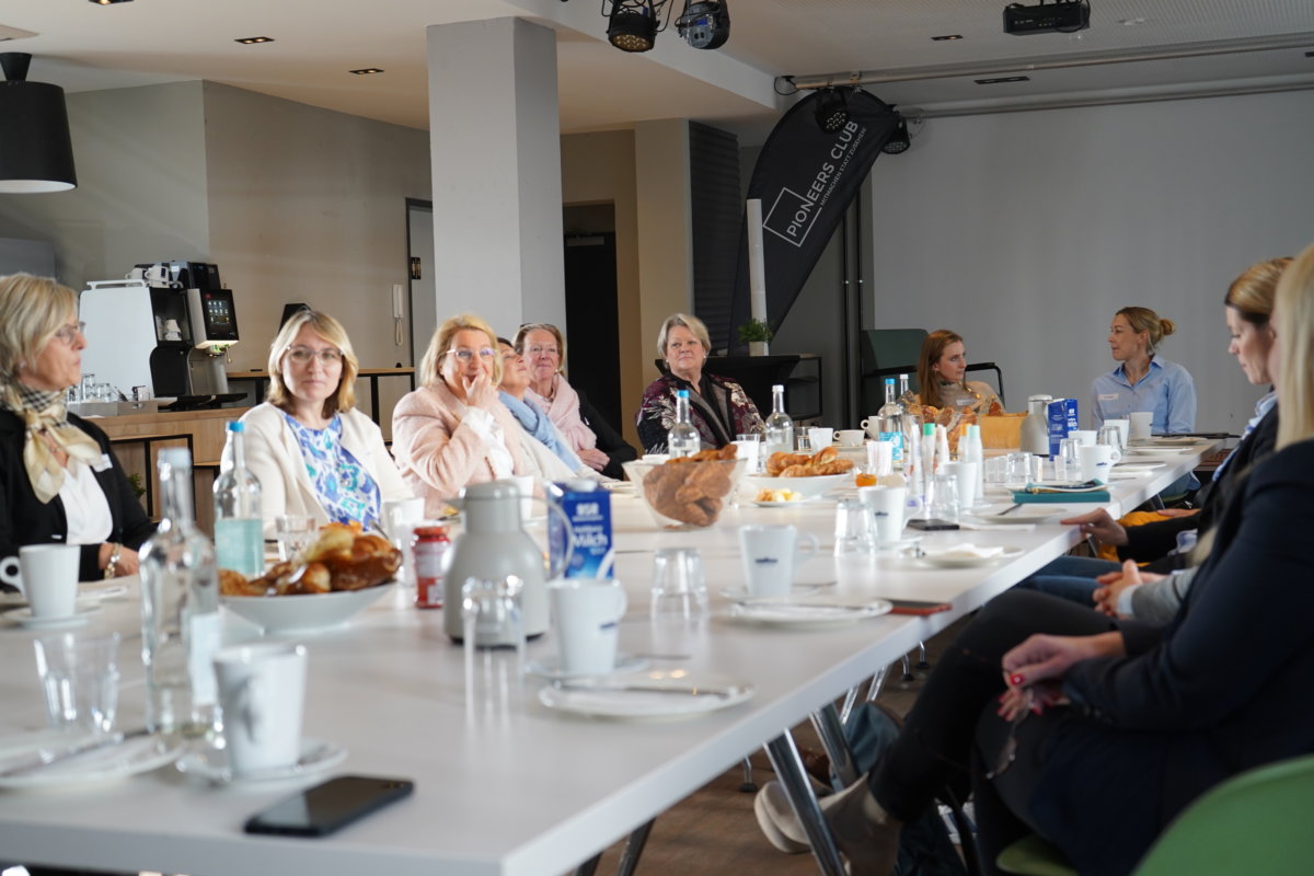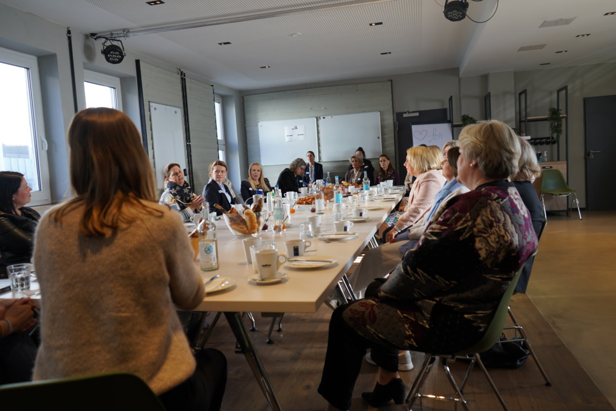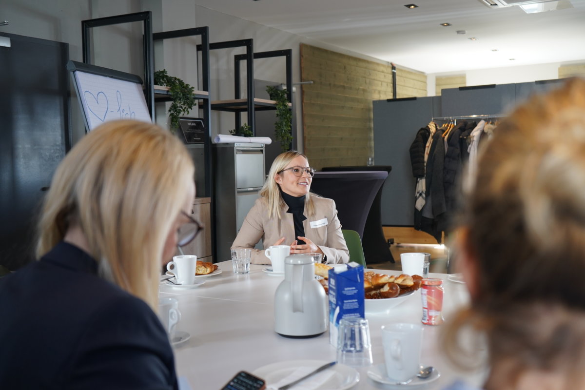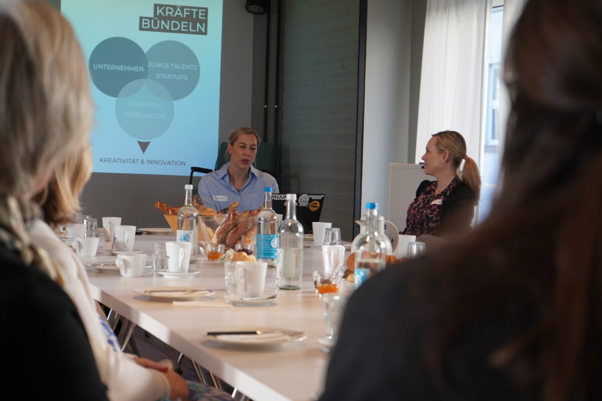 Im Rahmen eines Frühstücks stellten Britta Herbst, Geschäftsführerin Pioneers Space GmbH und Hanna Drabon, Projektleiterin WEGE, sowie die Gründerinnen Jessica Wölke und Vanessa Böckstiegel Bielefeld als attraktiven Standort für Unternehmensgründungen vor.