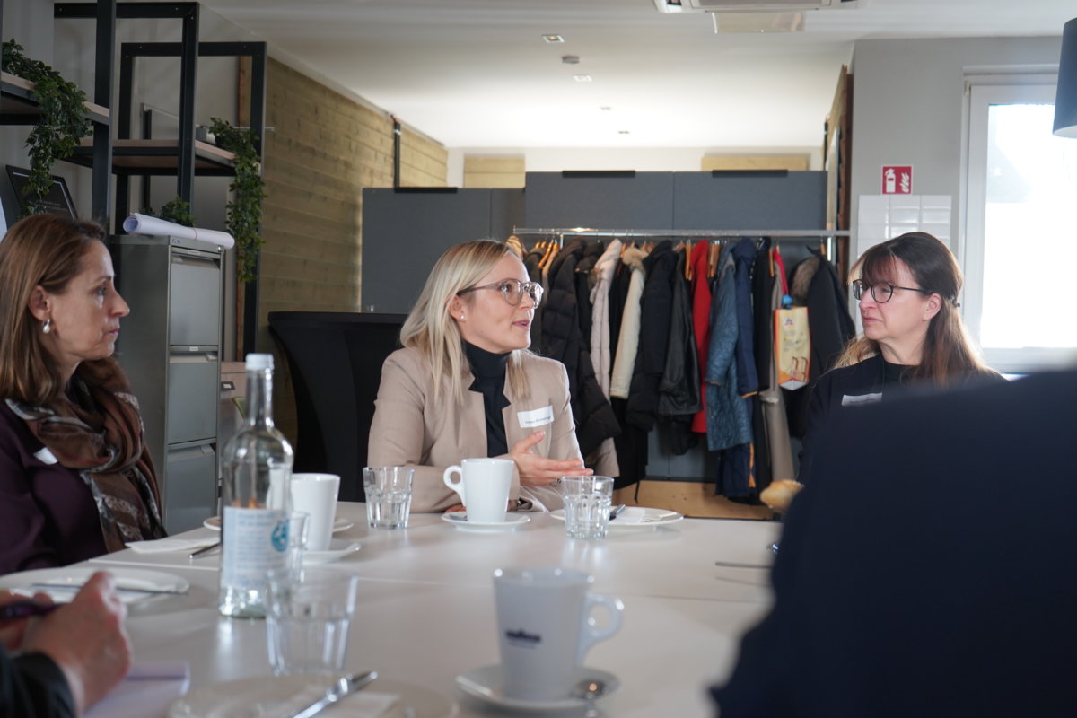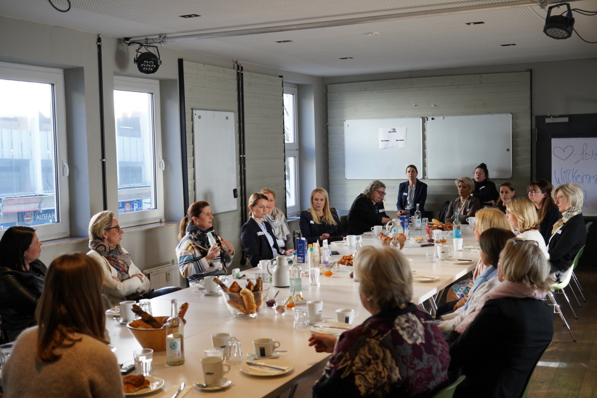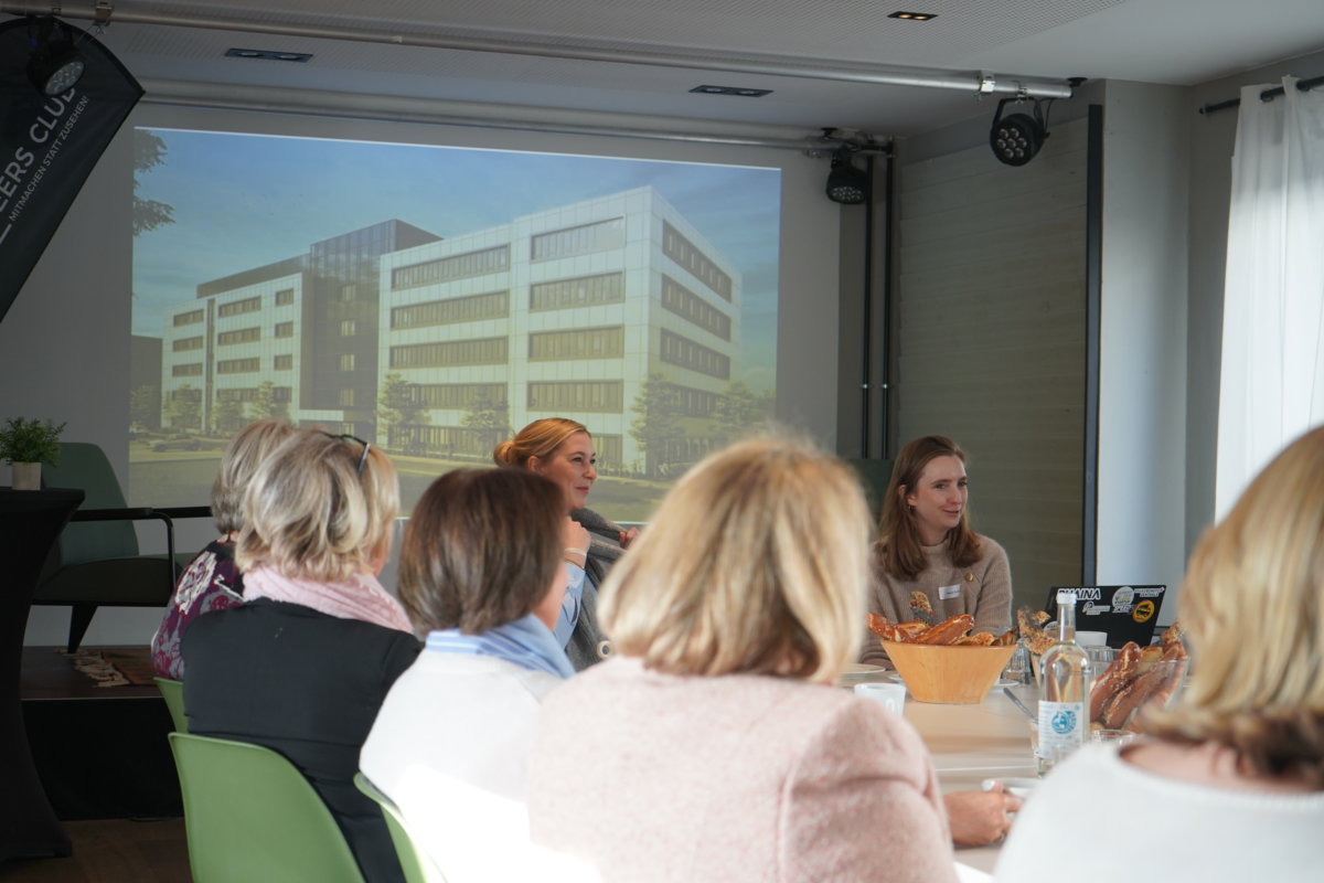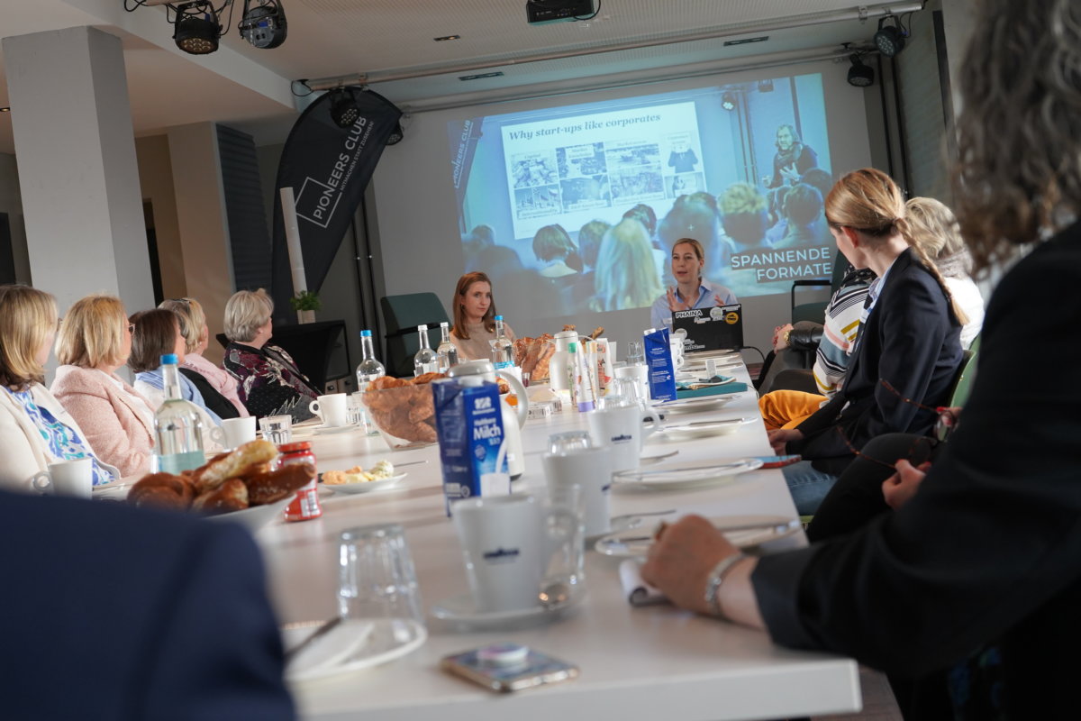 Im Rahmen eines Frühstücks stellten Britta Herbst, Geschäftsführerin Pioneers Space GmbH und Hanna Drabon, Projektleiterin WEGE, sowie die Gründerinnen Jessica Wölke und Vanessa Böckstiegel Bielefeld als attraktiven Standort für Unternehmensgründungen vor.