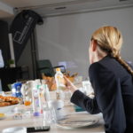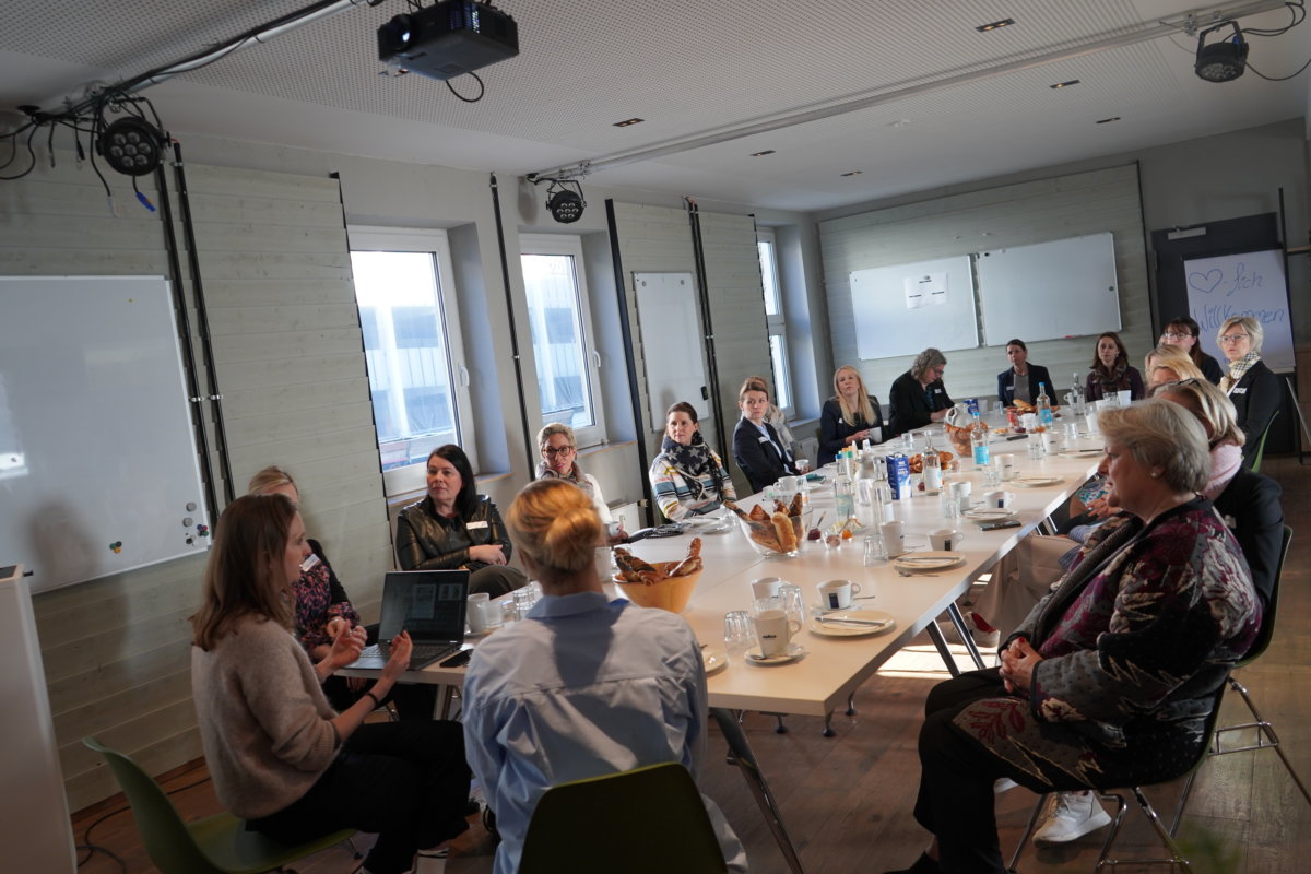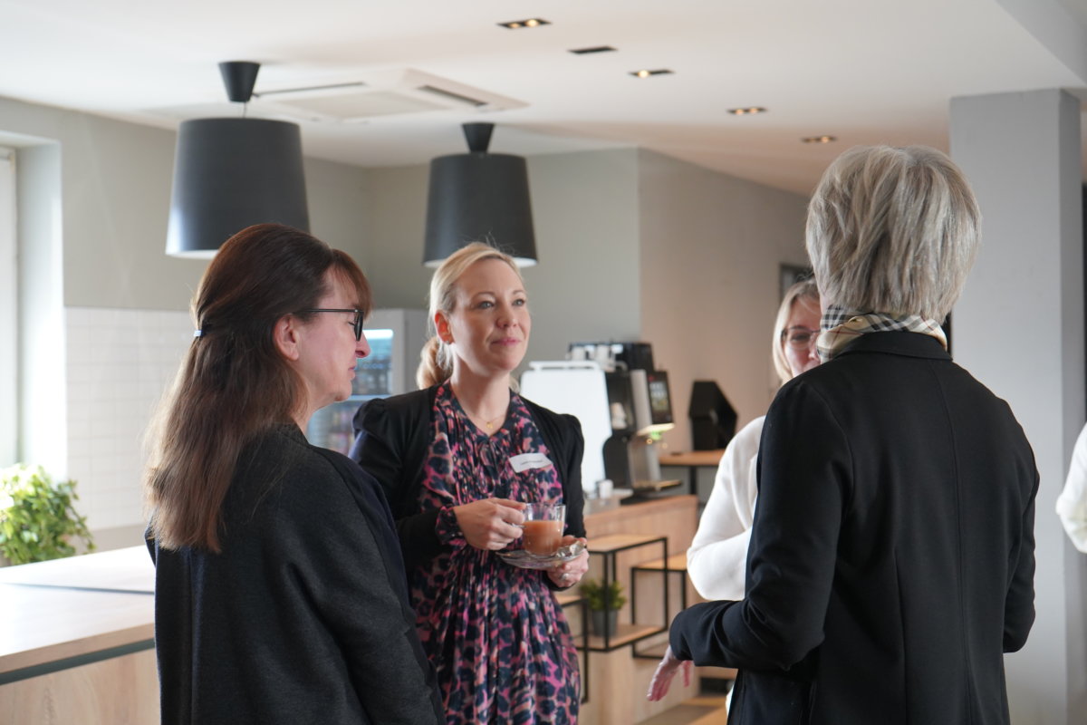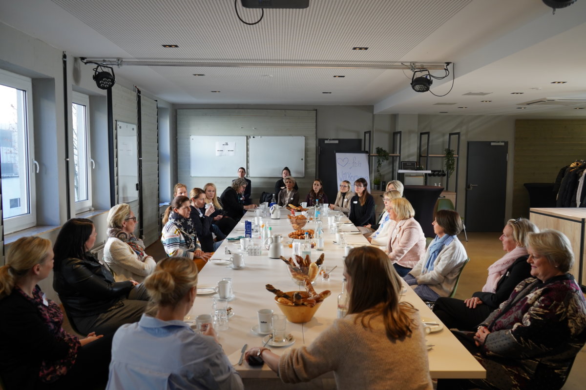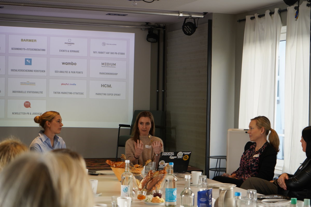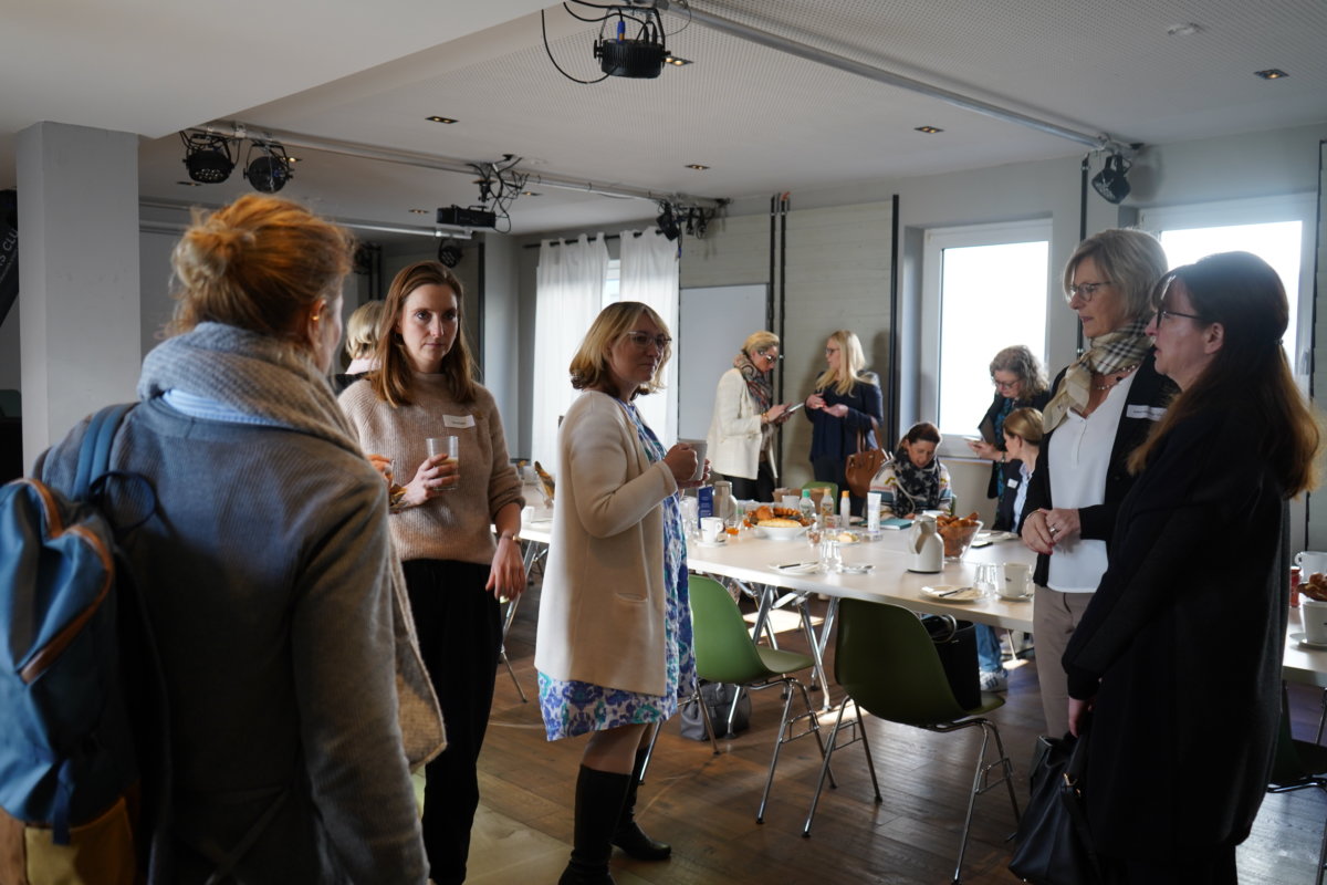 Im Rahmen eines Frühstücks stellten Britta Herbst, Geschäftsführerin Pioneers Space GmbH und Hanna Drabon, Projektleiterin WEGE, sowie die Gründerinnen Jessica Wölke und Vanessa Böckstiegel Bielefeld als attraktiven Standort für Unternehmensgründungen vor.