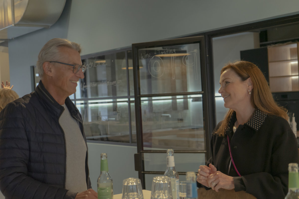 Integriert in den Harms Markt ist die neue Pioneers Kitchen. Nur durch Glaswände abgetrennt, ist hier inmitten der Markthalle eine 45 Quadratmeter große Fläche für Kochevents entstanden. Mit modernen Küchengeräten ausgestattet, soll der Raum schon bald für Kochkurse, exklusive Firmenevents und Feiern zur Verfügung stehen. Britta Herbst freut sich über den neuen Treffpunkt, der ein Ableger des in den darüberliegenden Etagen untergebrachten Pioneers Club ist. „Mit der Pioneers Kitchen haben wir einen neuen Treffpunkt geschaffen, der Menschen an einem besonderen Ort ins Gespräch bringt.“