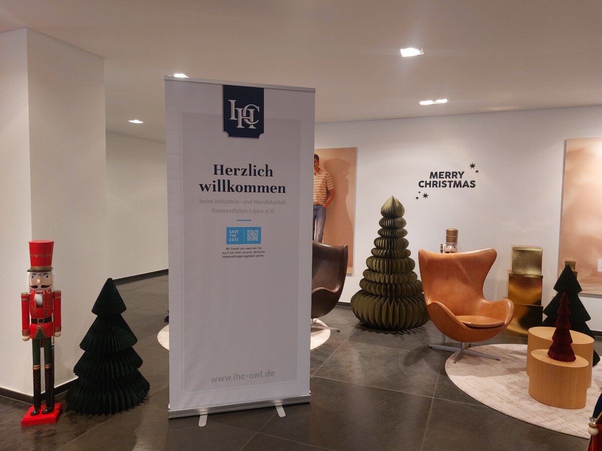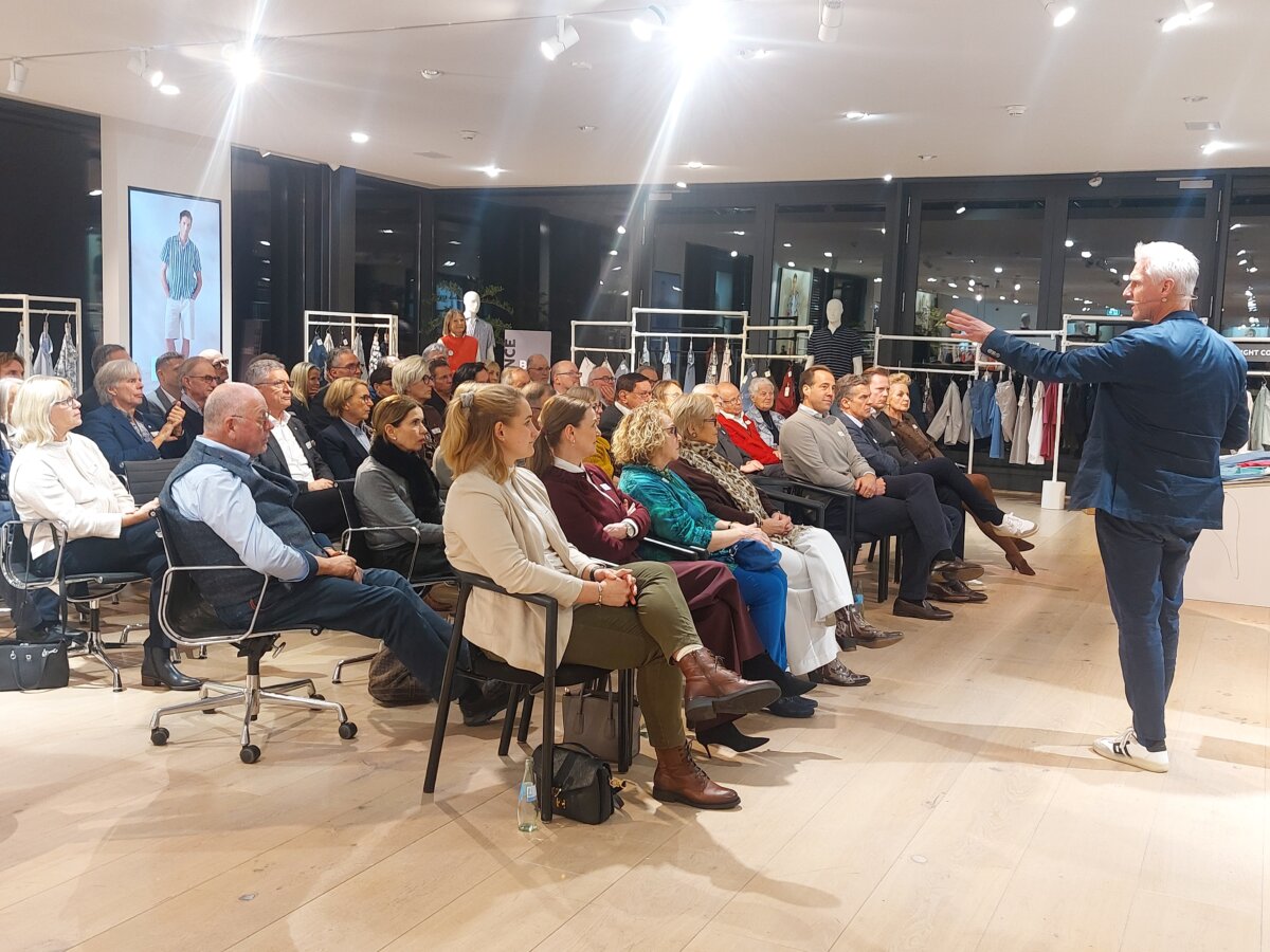 Am 25.11.2025 drehte sich beim Industrie- und Handelsclub OWL (IHC) alles um das Thema Mode. Johannes Meinhold, Geschäftsführer der Firma SOKRATHERM GmbH Energie- und Wärmetechnik, begrüßte als Sprecher des IHC-Regionalkreises Herford rund 50 interessierte Mitglieder im stylischen Brax-Sky-Showroom der Firma Leineweber GmbH & Co. KG im Herzen von Herford.