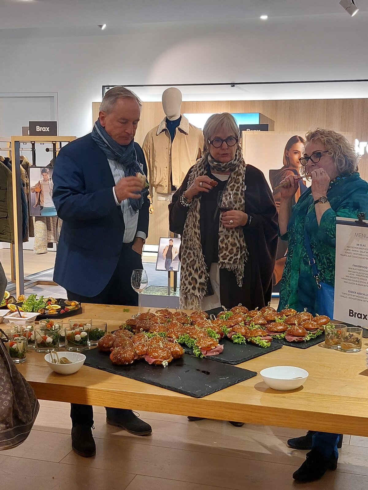 Beim anschließenden geselligen Beisammensein waren sich alle Gäste einig, dass dies ein sehr interessanter und inspirierender Besuch in der Modewelt der Firma Leineweber Brax war. Bei einem sehr schmackhaften Buffet, kühlen Getränken und guten Gesprächen ließen sie den Abend ausklingen. Ein besonderes Dankeschön geht an das gesamte Brax-Team für die exzellente Gastfreundschaft.