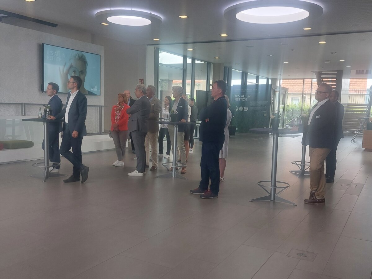 In seiner Funktion als Sprecher des IHC Regionalkreises Herford hat Johannes Meinhold die Mitglieder des IHC zu einem Unternehmensbesuch beim Möbelbeschlägehersteller Hettich in Kirchlengern eingeladen. Über 50 Mitglieder kamen ins Forum und wurden vom ihm und dem Geschäftsführer Michael Lehmkuhl herzlich begrüßt. Unter dem Motto „It´s all in Hettich“ präsentierte Lehmkuhl mit viel Leidenschaft die große Produktvielfalt in der Möbelwelt. Den Höhepunkt der Veranstaltung bildete ein Einblick in die Schubkasten-Produktion, die Logistik mit Hochregallager und den Showroom im Forum. Bei einem leckeren Imbiss und kühlen Getränken konnten die Gäste neue Kontakte knüpfen und sich über ihre Eindrücke austauschen. Genau das macht ein gelungenes IHC-Event aus.