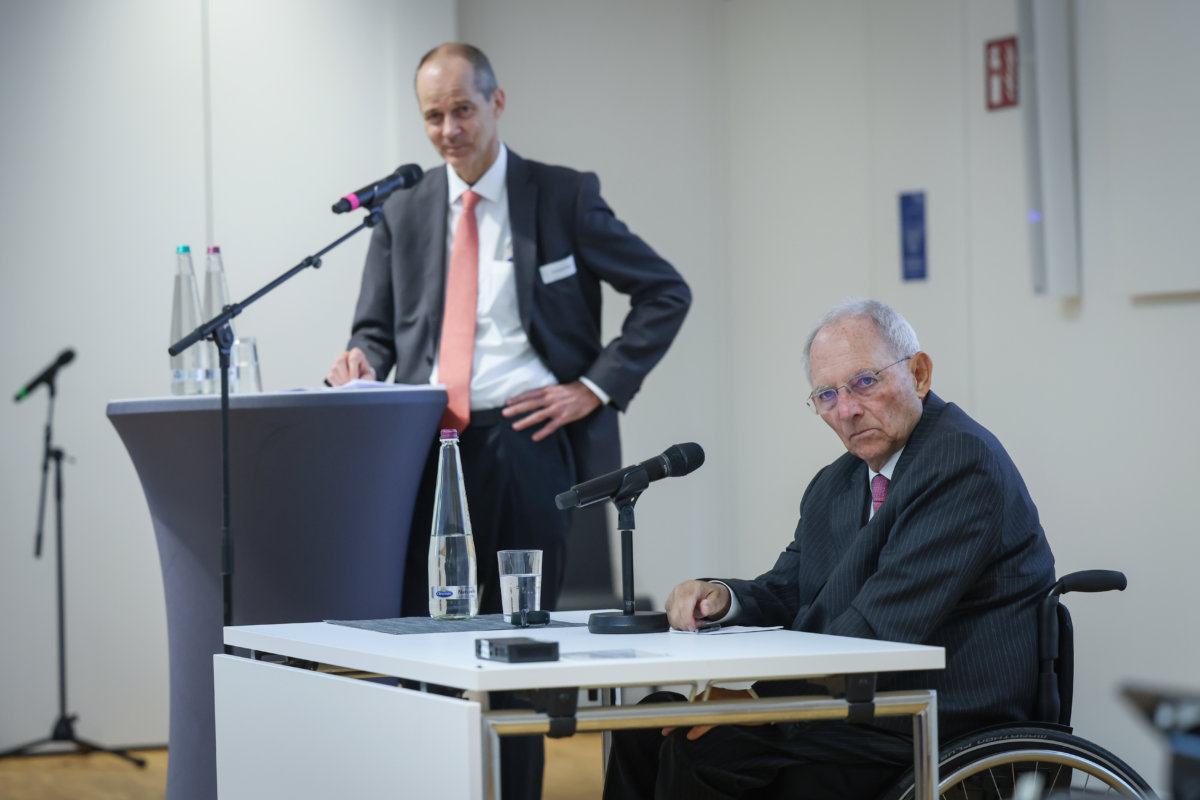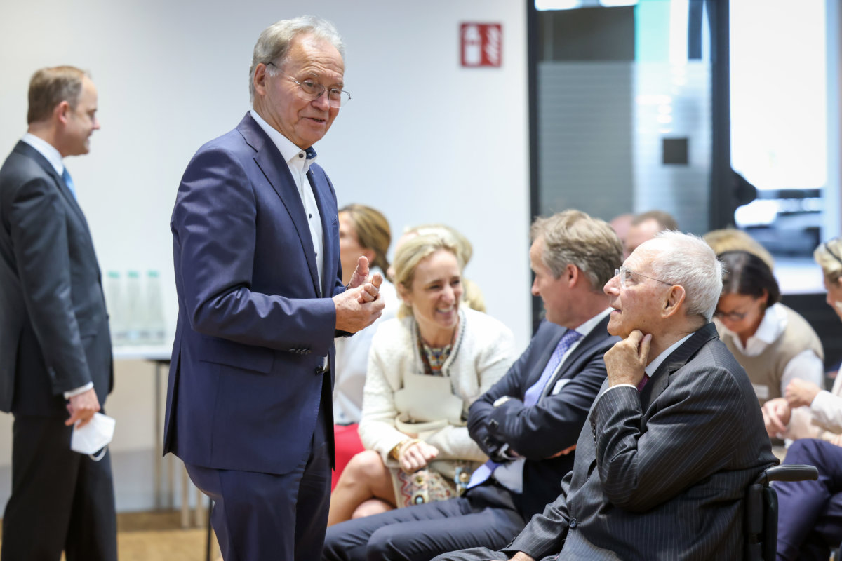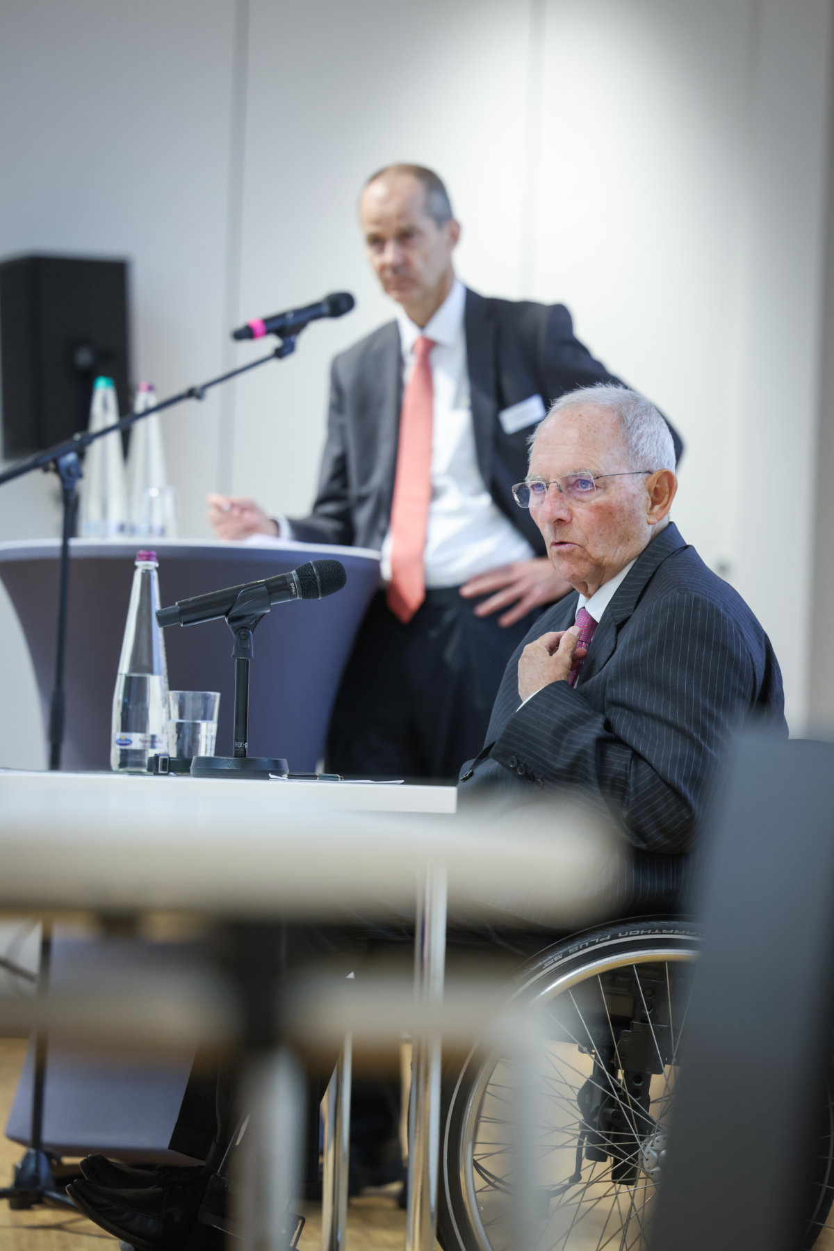 Stärkt der Ukraine-Krieg den Zusammenhalt unter den Staaten Europas? Bei allem Negativen sei dies auch ein positiver Akzent, so Schäuble. „Allerdings werden wir in Europa lernen müssen, dass die Mehrheit der Menschen stärker an ihrer nationalen Zugehörigkeit hängt als an Europa. Darüber darf man sich nicht hinwegsetzen“. Vieles lasse sich aber nur gemeinsam verwirklichen, wie beispielsweise starke EU-Außengrenzen. Für Deutschland sieht er hier einen „bitteren Lernprozess“ nahen, da es sich von seinem Modell der Parlamentsarmee verabschieden müsse. Als größte Volkswirtschaft Europas müsse Deutschland zudem eine stärkere Führungsrolle einnehmen. Dies könne man nicht nur der aktuellen Regierung vorwerfen, sondern auch der Vorgängerregierung, bemerkte Schäuble selbstkritisch.