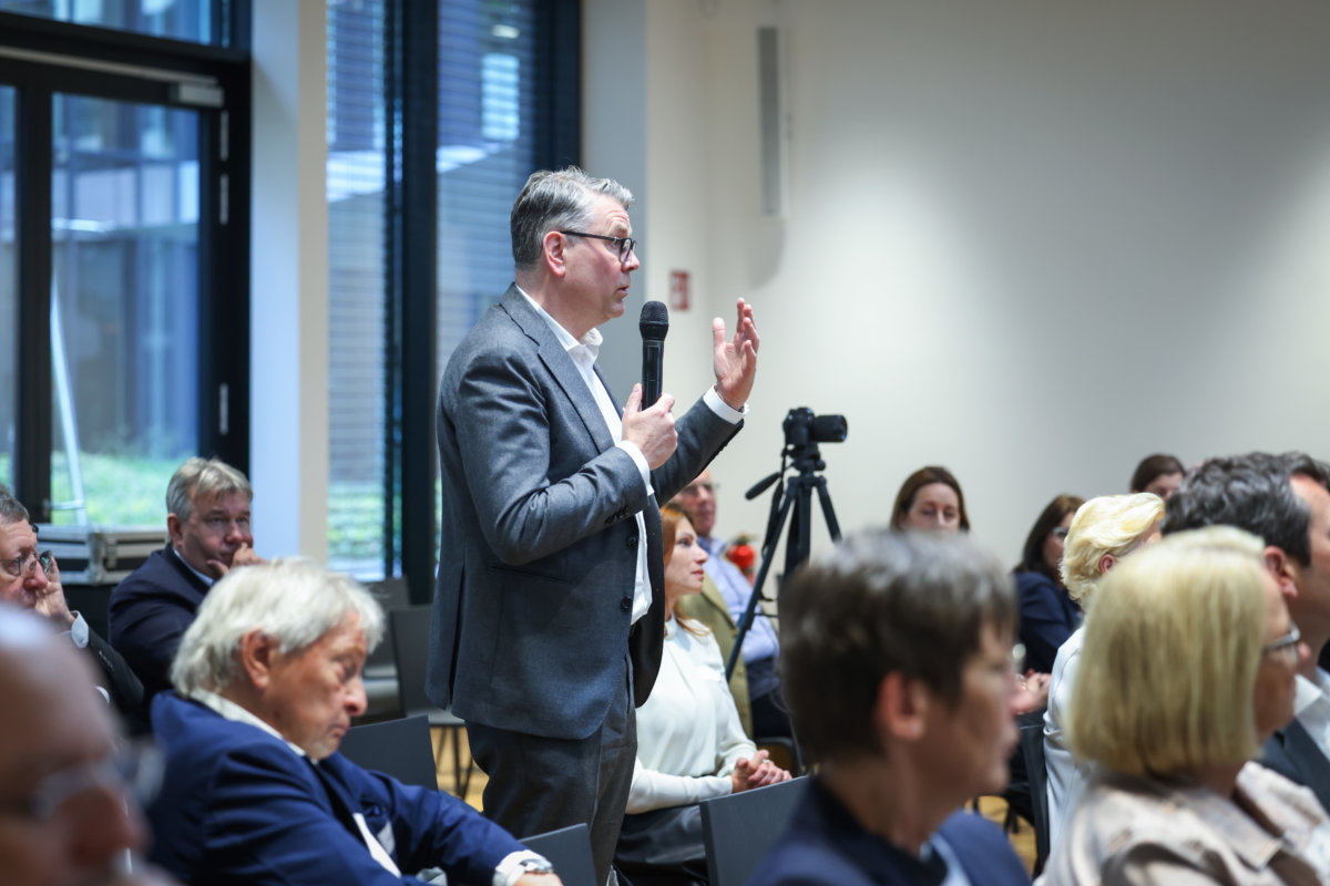 Nach einem langen Applaus für den Gast dankte Moderator und IHC-Vizepräsident Christoph Mohn dem Politiker für seine kluge Einordnung der aktuellen Lage und der Goldbeck GmbH für die freundliche Ausrichtung der Veranstaltung.