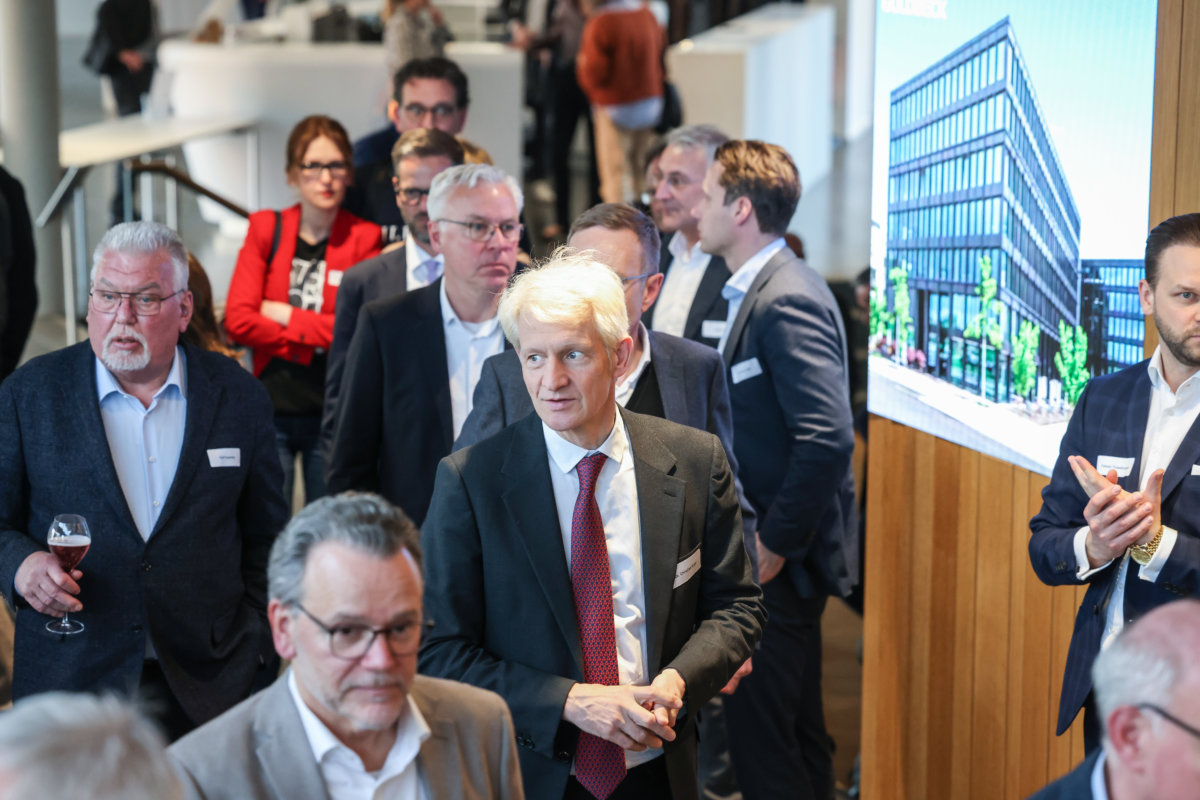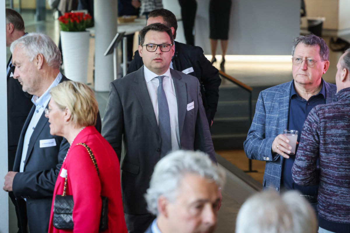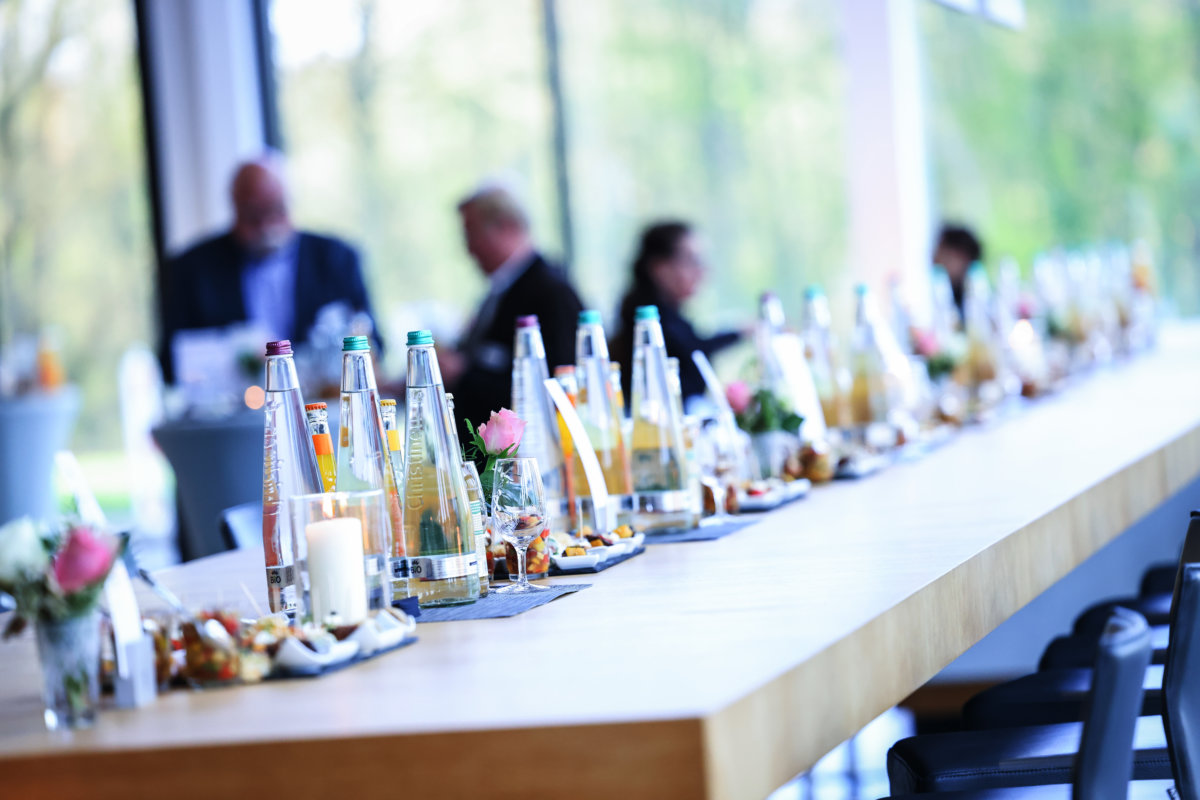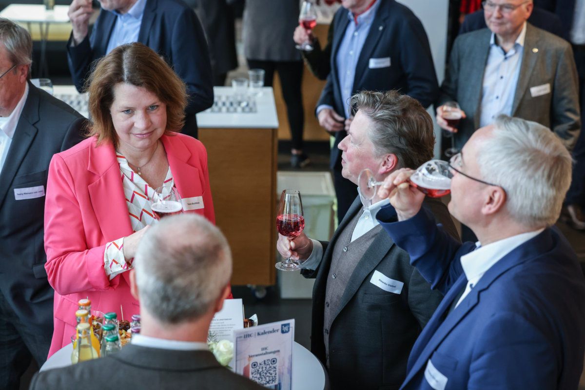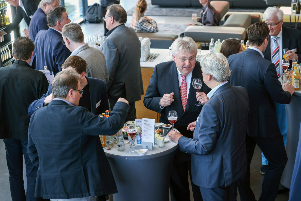 Nach der von IHC-Präsident Eduard R. Dörrenberg moderierten Veranstaltung lud Gastgeber Goldbeck noch zu Umtrunk und Imbiss ein. Gesprächsthemen gab es durch den vorangegangen Minister-Vortrag reichlich.