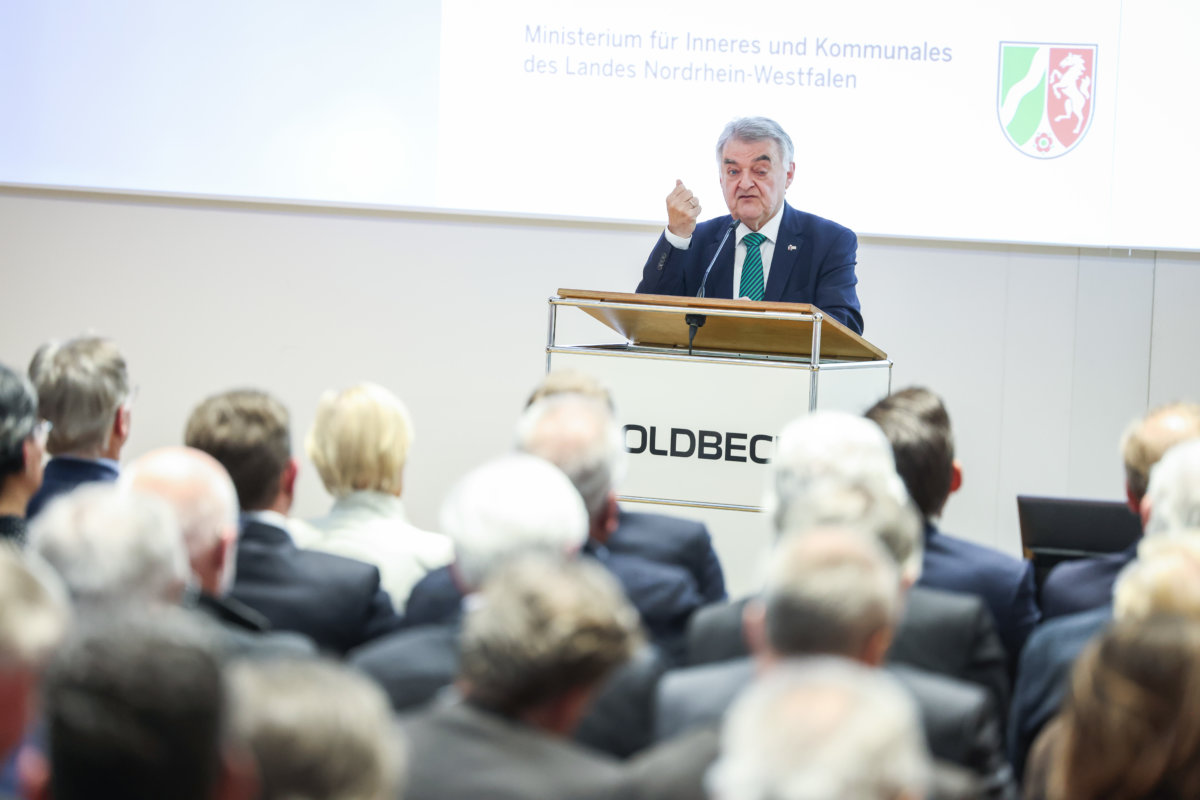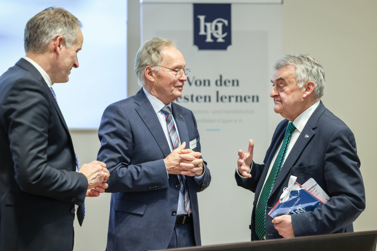 Der Andrang im Vortragssaal der Firma Goldbeck war groß: Die verfügbaren Plätze für den Vortrag von NRW-Innenminister Herbert Reul waren schnell vergeben. Neben der Prominenz des Redners spielte dabei sicher auch das Thema eine Rolle, zu dem der CDU-Politiker auf Einladung des Industrie- und Handelsclubs OWL, IHC, sprach: Wirtschaftskriminalität.